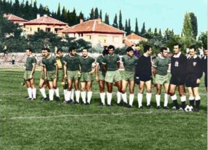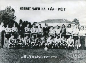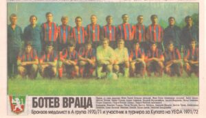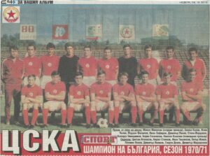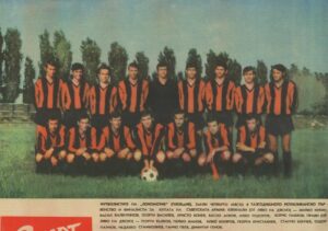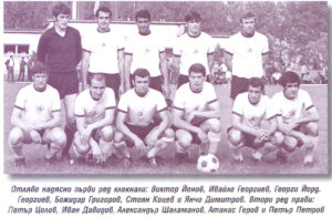 Unsure about the season, but from the period – the only problematic player is Traycho Spassov. Standing from left:Георги Сапинев, Димитър Митов, Кирил Белчински, Младен Пенев, Борис Манов-Бурето. Crouching: Сашо Паргов, Михаил Шалдупов, Георги Богданов, Киро Миланов, Иван Кючуков, Трайчо Спасов.