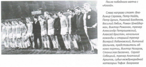 3-й ряд: В.С.Марьенко(гл.тренер), И.И.Замятин(администратор), И.Домантиевский, А.Лысов, В.Фролов, А.Чернявский, Е.Кулемин, В.Чуркин, ?, Н.Вихарев, С.П.Воротилин(нач-к команды), В.Г.Гавриков(массажист)
