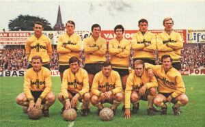 Standing from left: Yves Baré , Bob Dalving , Lothar Emmerich , Roland Coclet , Guillaume Raskin, Helmut Brosch . Crouching: Rudi Belin , Herman Houben , Jan Verheyen , Jean Pierre Kasprzak, Chris Stroybants 6 Beerschot VAV 30 12 9 9 36 32 33