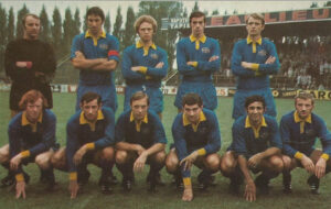 Back row from left: Jacques Gérard , Fernand Verleysen , Marcel Deprez , Michel Poels, Christian Andersen Front row: Romer Larsen , Jacques Teugels , Henri Petersen , Pierre Van De Velde , Paolo Zalamena, Michel Arnold 10 Union St.-Gilloise 30 9 14 7 40 49 25