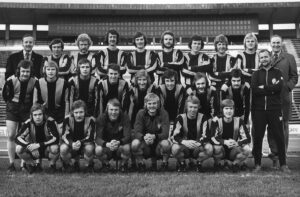 Back row from left: Stig Svensson, Göran Hagberg, Lars Olof Gunnskog, Björn Andersson, Mats Nordenberg, Karl Axel Blomqvist, Leif Blom, Jan Ivar Bergqvist, Tommy Svensson, Anders Linderoth, Vilmos Varszegi.
